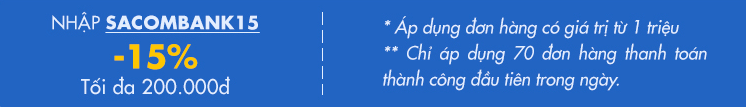 – Nhập “SACOMBANK15” tại mục “Sử dụng mã giảm giá” phía dưới